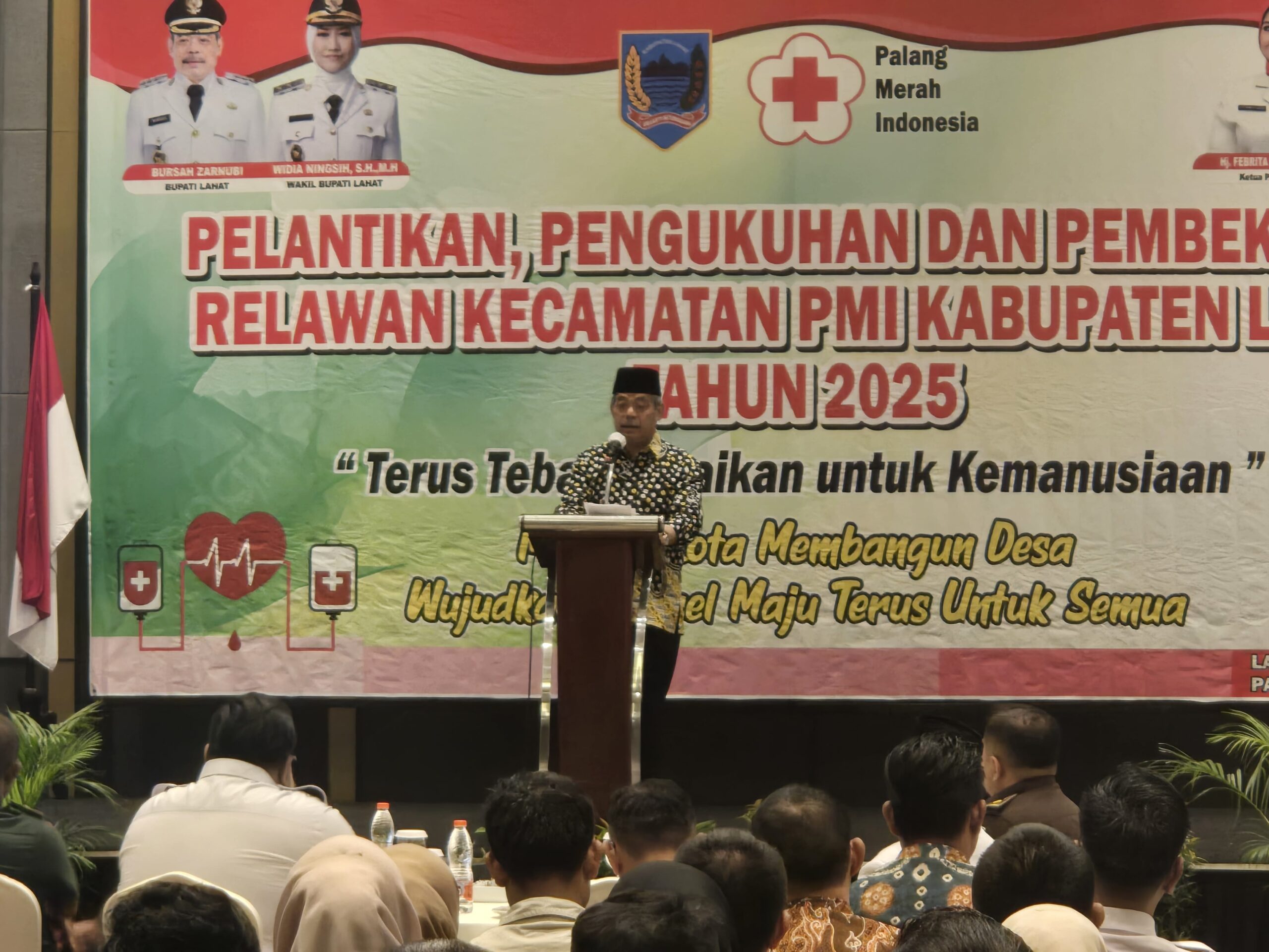 Pelantikan ini dihadiri oleh Bupati Lahat Bursah Zarnubi, perwakilan PMI Provinsi Sumatera Selatan Geri Raditio, serta jajaran pengurus dan relawan PMI Kabupaten Lahat.