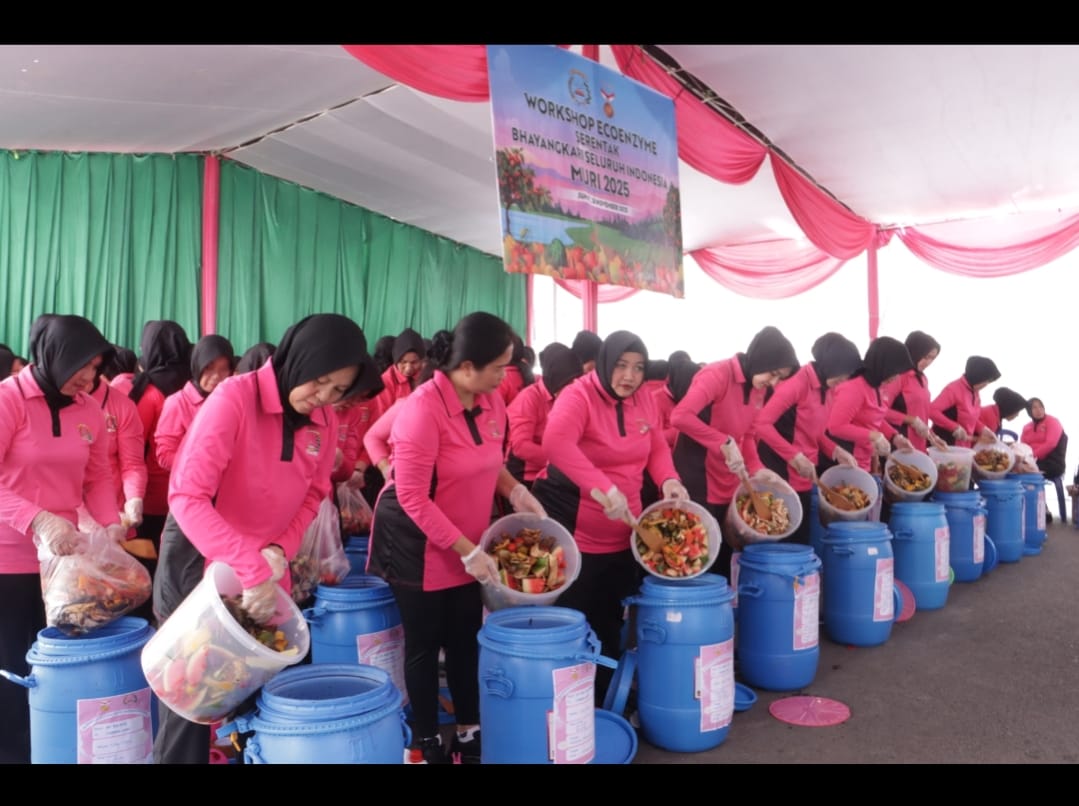 Lintas sumsel.com_lahat Jumat (28/11/2025) bertempat di lapangan Mapolres lahat sekitar pukul 08:00 wib Acara pembuatan eco enzim serentak berlangsung meria, kegiatan acara ecoenzim ini bhayangkari cabang lahat mengajak masyarakat agar mengolah limbah organik, seperti sisa buah dan sayur untuk di buat menjadi limbah organik salah satunya dengan membuat ecoenzim dan jumlah peserta pembuatan ecoenzim ini se Indonesia berjumlah 9.800 orang,