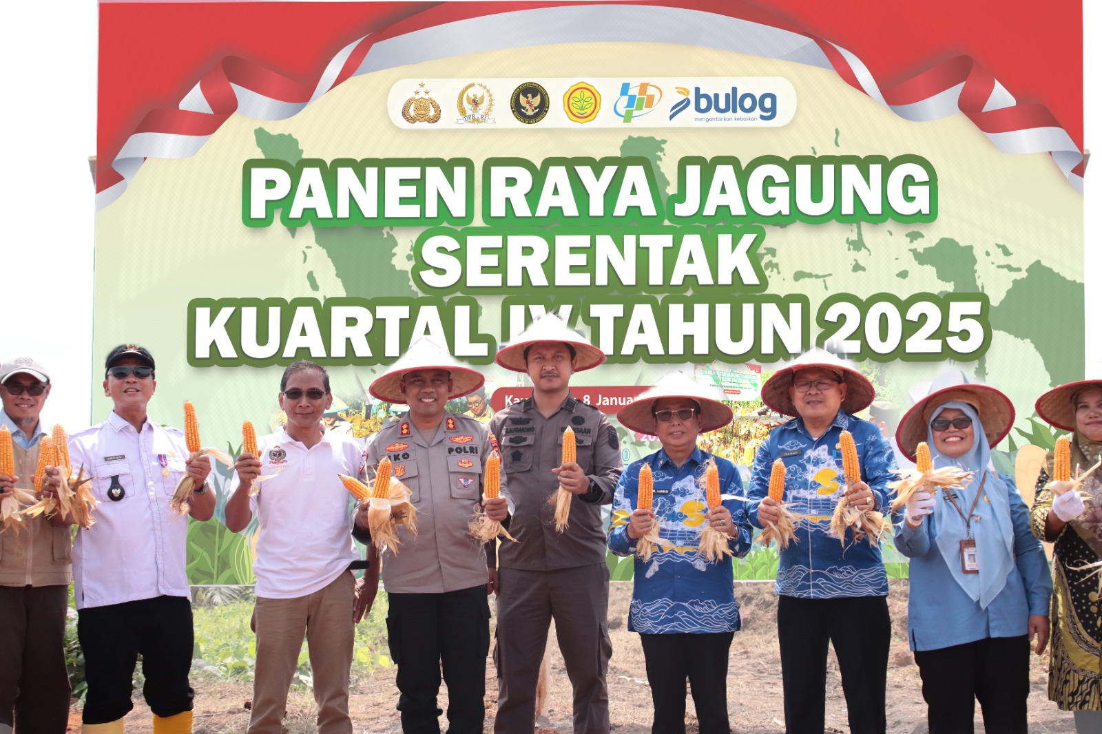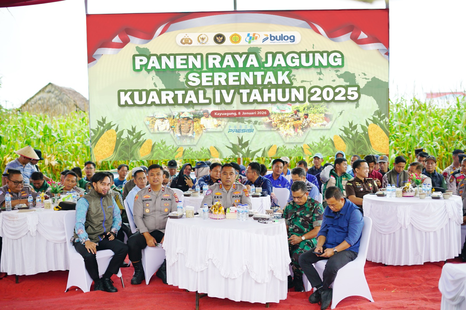 Selain unsur internal kepolisian, kegiatan ini turut dihadiri oleh sejumlah unsur Forkopimda dan instansi terkait Hadir pula kelompok tani (Poktan), serta pemilik lahan sebagai bentuk dukungan langsung terhadap kegiatan panen raya jagung tersebut.