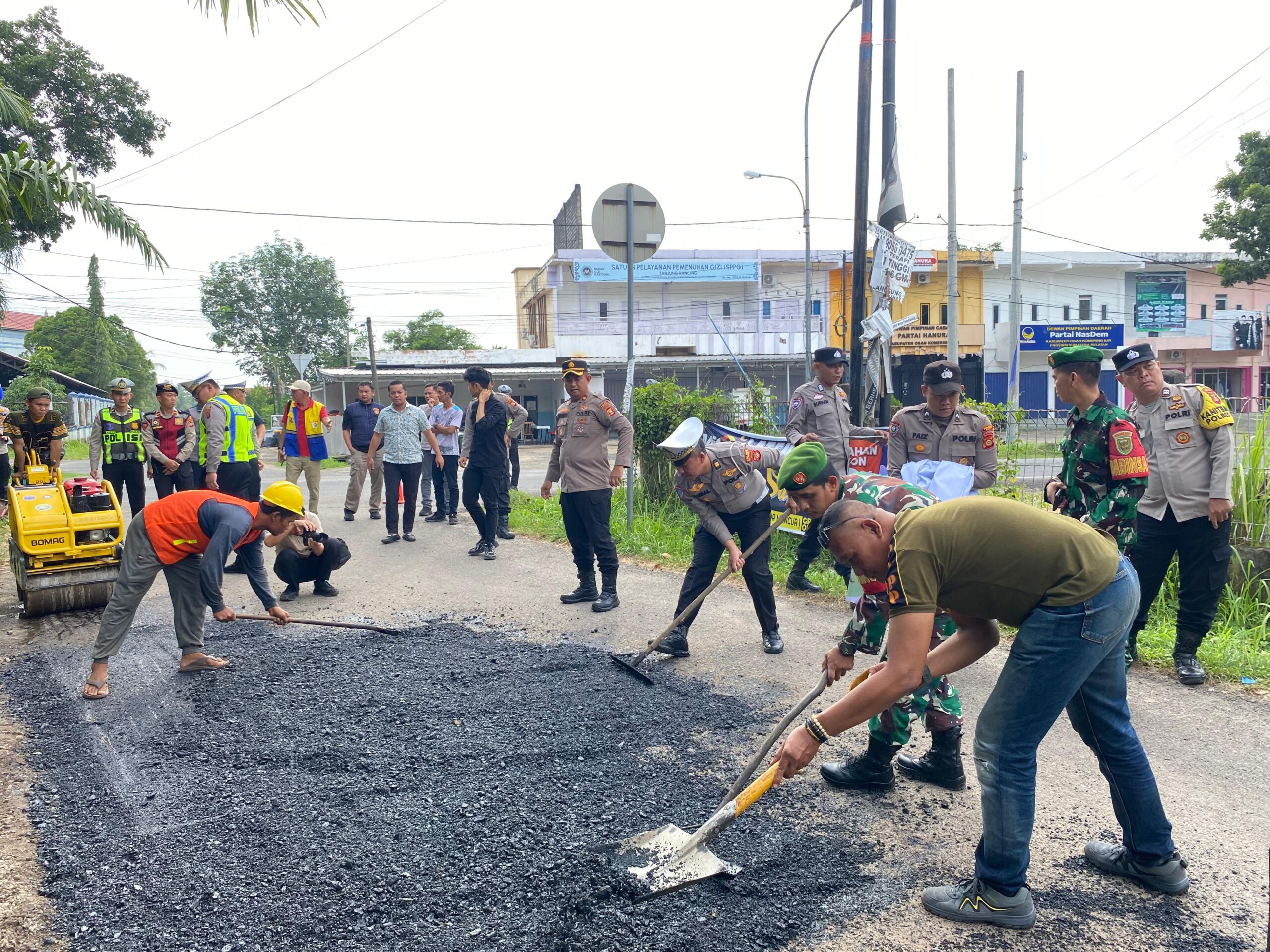 Polres OKI Bersihkan Lingkungan dan Tambal Jalan, Dukung Program BELIDA Kapolda Sumsel